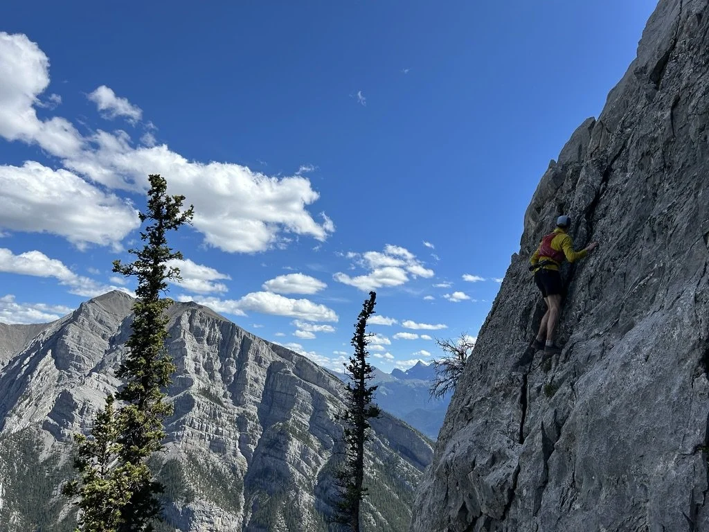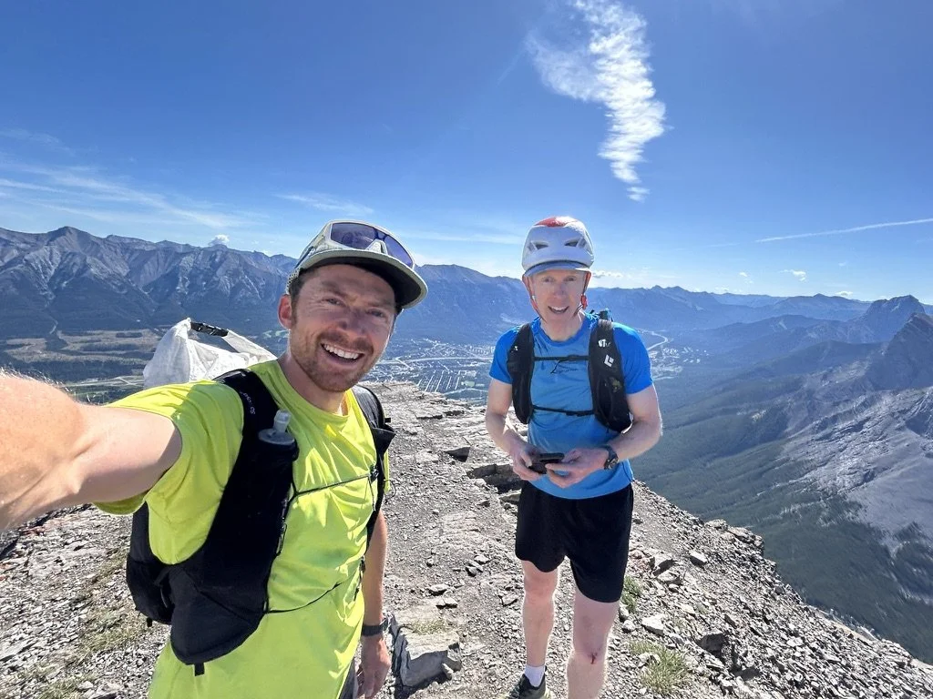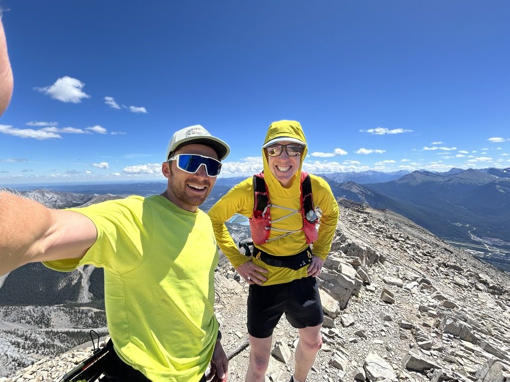 On July 8, Mike Burke and I completed a slightly more technical version of what is commonly referred to as the Canmore Quad. The idea for this variation was first put in my head about five years ago, after completing what was then the FKT for the standard Quad route in 7 hrs 48 min. This year, Karl Augsten shaved just over 30 minutes off that time, bringing it down to 7 hrs 13 min, which is of course extremely quick. A few days after my FKT effort back in 2020, Adam Campbell and Eric Carter connected the NE Buttress of Ha Ling, the North Ridge of EEOR, the West Ridge of Grotto, and the ESE Ridge of Lady Macdonald, making up a slightly more technical version of the trail-running quad, in 18.5 hours.